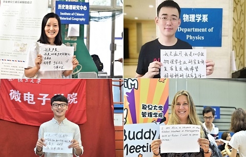 This year, different colleges and departments have introduced new ideas and adopted characteristic and innovative service to welcome incoming students. With the theme of “Embracing a Better Self in Three Years”, the School of Philosophy invited students to write a postcard with messages for the future self and keep it for the future. The old students and new students of the International Cultural Exchange School worked together, to help with matriculation work. The School of Social Development and Public Policy, the Department of Macromolecular Science, and the Department of Materials Science arranged a team to shoot VCRs of the matriculation, invited new students to share their thoughts and hopes after they came to Fudan, and kept their memories of their first day at Fudan. The School of Journalism, the School of Information Science and Engineering designed special college Logos and KT boards for group photos. These activities were especially popular among the freshmen and left them nice and warm memory for the first day of their graduate study.