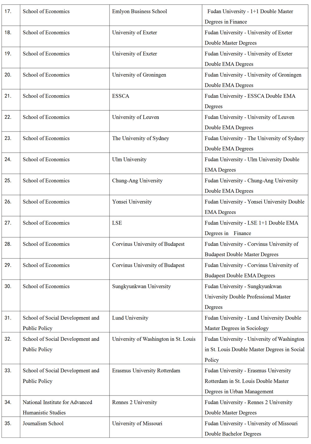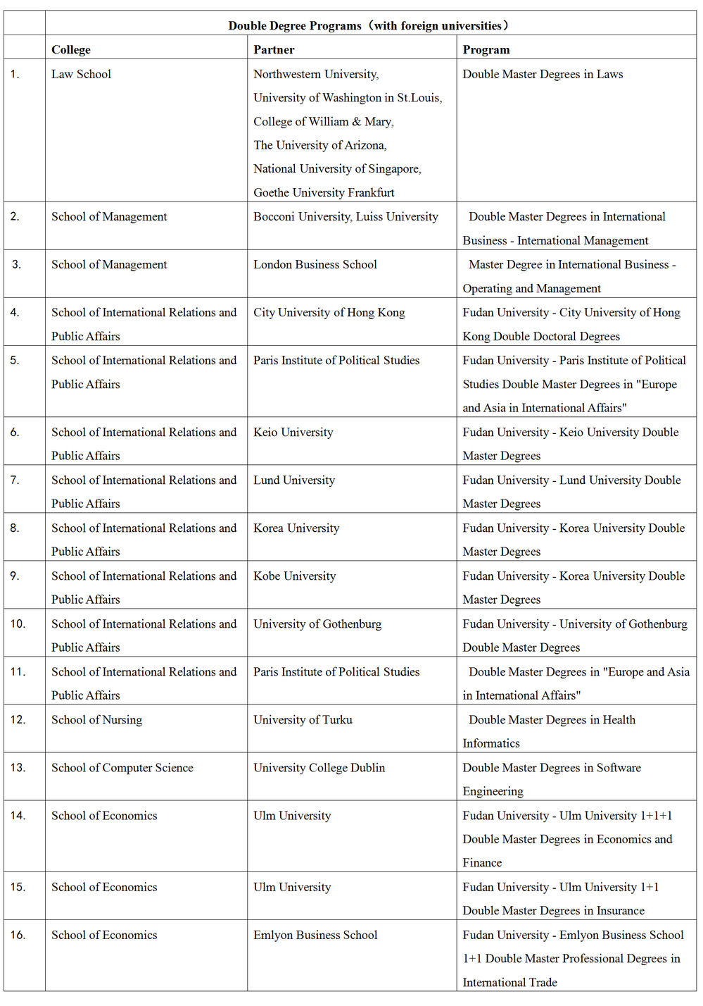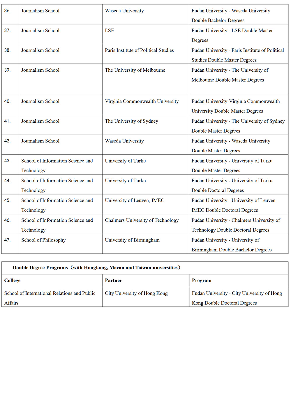 Double Degree Programs(with foreign & Hongkong, Macau and Taiwan universities)