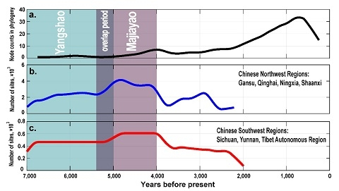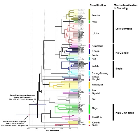 By reconstructing the evolution of the 109 Sino-Tibetan languages, their findings, in agreement with the northern-origin hypothesis, support the linguistic supposition of a dichotomy of Sinitic and Tibeto-Burman languages and estimate the initial divergence time of the Sino-Tibetan languages at 5,900 years BP on average. Integrated with archaeological evidence, the study shows that the population growths and expansions in northwest and southwest regions of China after about 6,000 years BP are related to the Sino-Tibetan divergence and development. The results also suggest that the divergence and development of Sino-Tibetan languagesmay be associated with the development of the Yangshao and/or Majiayao Neolithic cultures, and compatible with the farming/language dispersal hypothesis of agricultural expansion in China.