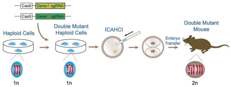 Experimental procedures for producing mouse models of double heterozygous mutants through semi-cloning and CRISPR-Cas9