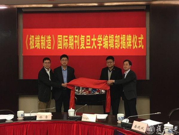 On December 24, the editorial department at Fudan University of the International Journal of Extreme Manufacturing (IJEM) was unveiled. IJEM, co-sponsored by the China Academy of Engineering Physics, Dalian University of Technology and Fudan University, will be issued worldwide by the Institute of Physics Publishing (IOP).