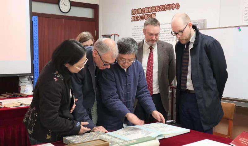 The Cambridge delegation also visited the Institute for the Preservation and Conservation of Chinese Ancient Books. Professor Yang Guanghui introduced to the delegation traditional Chinese paper making, ink making, ink rubbing and restored ancient books that reflect the vitality and diversity of Chinese characters.