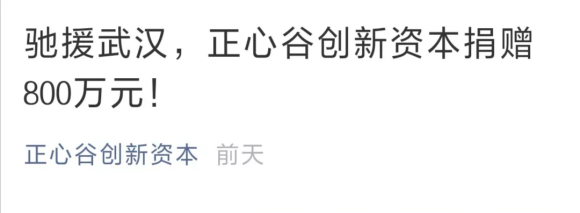 Loyal Valley Capital donated 8 million yuan ($1,146,624) to the frontline medical workers in Wuhan.