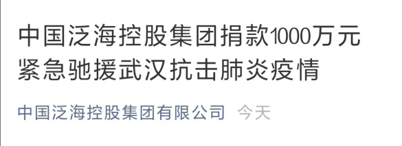 China Oceanwide Holdings Group donated 10 million yuan ($ 1,433,280) to Wuhan Municipal Government.