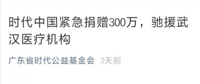 Times China Group offered 3 million yuan ($429,984) to support the medical facilities in Wuhan.