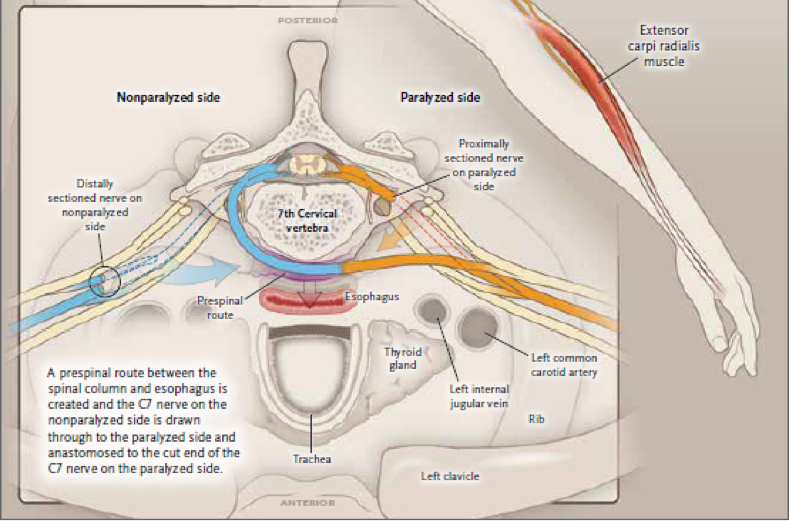 Building up on this discovery, the team initiated clinical trials in 2008. Phase I and II trials prove that due to neuroplasticity, a term referring to the capacity of neurons and neural networks in the brain to change their connections and behaviour, the healthy hemisphere can spare a new area in itself to connect with the paralyzed arm. Two years ago, the researchers published their findings in the New England Journal of Medicine under the title of “Trial of contralateral seventh cervical nerve transfer for spastic arm paralysis”.