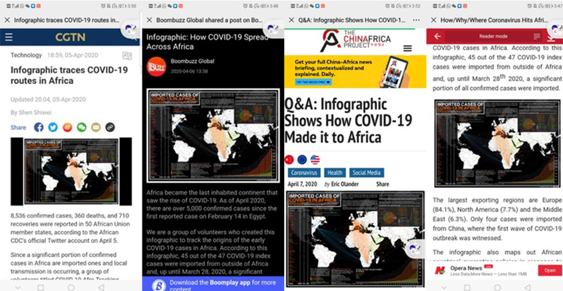 To fulfill that responsibility, she has also been writing for global media organizations. Her in-depth report titled “Flying in East Africa” (《飞行在东非:空难背后那些在埃塞俄比亚追梦的中国面孔》) that came out three days after the 2019 Ethiopian plane crash was the most read non-fiction article of the month on The Paper, a Shanghai-based online newspaper. Together with some other , The project, titled “The Map of Imported Cases of Covid-19 in Africa”, on which she collaborated with those who either were experts on Africa or lived in Africa, was later covered by news agencies including CGTN, Boomplay, The China-Africa Project, and Opera News. “Although I’m not a doctor, there’s at least something that I can do for this global crisis,” said she.