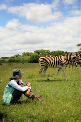 Yunong posed with zebras in South Africa.