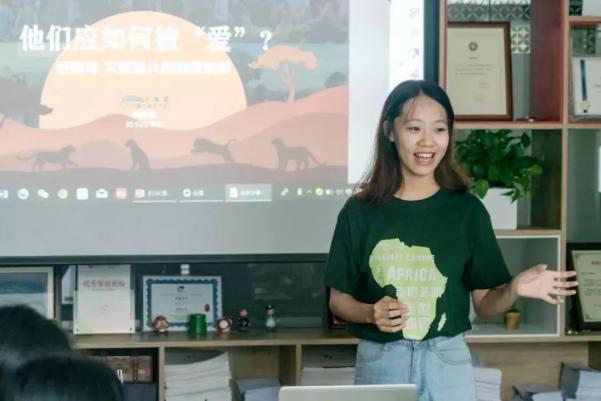 Yunong presents her project on caring for African animals.