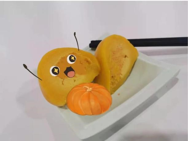 The dough is dyed with pumpkin juice, which brings you the mellow freshness.