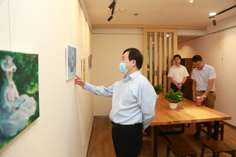 The university leaders visited the art spaces inside Xianghui Hall.