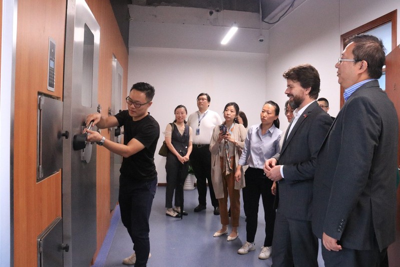 Schiettekatte visited the labs and the world’s leading room calorimeter designed and made for the Institute by the Dutch company Maastricht Instruments. Liu Tiemin, PI of Human Phenome Institute guided him through the instruments.