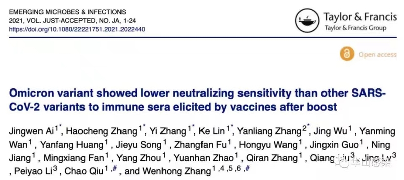 The study entitled“Omicron variant showed lower neutralizing sensitivity than other SARS-CoV-2 variants to immune sera elicited by vaccines after boost”has been published in Emerging Microbes& Infections.