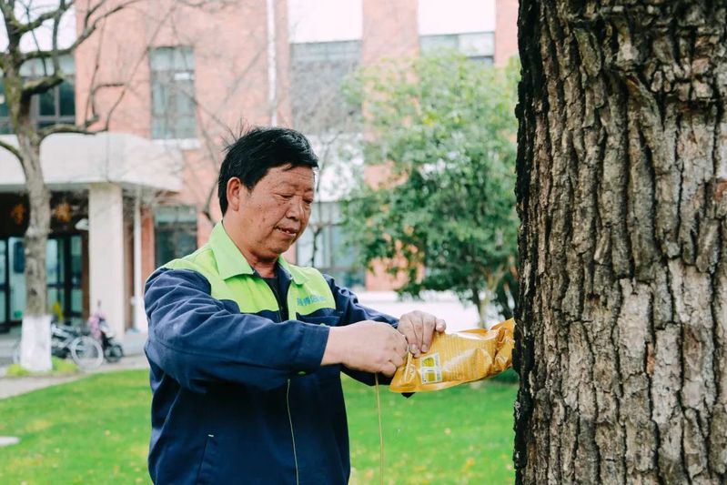 Last year, Typhoon “Fireworks” hit Shanghai. Yang and his colleagues worked overtime to save the trees that broke due to strong wind and stake the rest of the trees on campus.