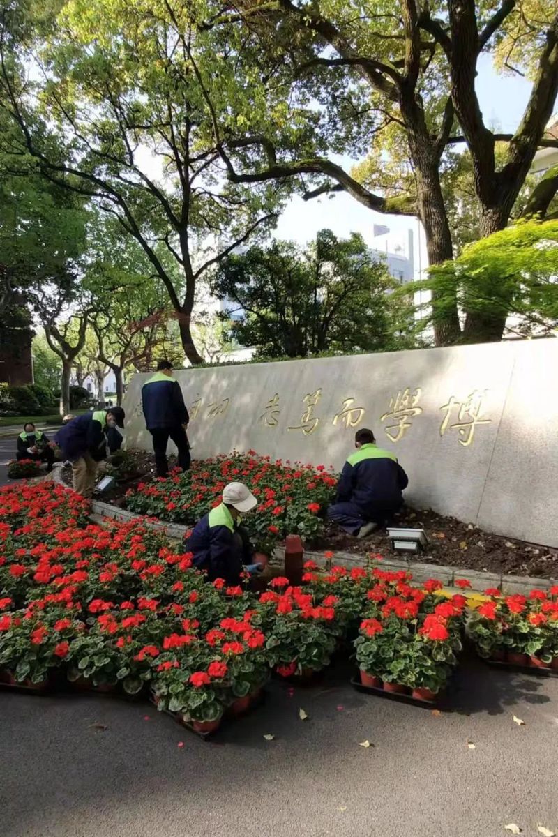 There was another year when the cold wave so was fierce that the temperature plummeted by more than 10 degrees Celsius on one night. Yang tossed and turned in bed that night, thinking about the 3,000 potted flowers on campus. The next day, the landscape crew worked 12 hours straight from 9am to 9pm to replace all the frozen potted flowers.
