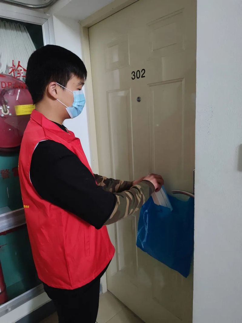 To meet the daily needs of students living on campus, student volunteers have been recruited to complete a lot of daily work which students normally would do themselves. The volunteers need to do almost everything from bringing students meals and daily supplies, to disinfecting the stairs and corridors, and to coordinating nuclear acid testing.