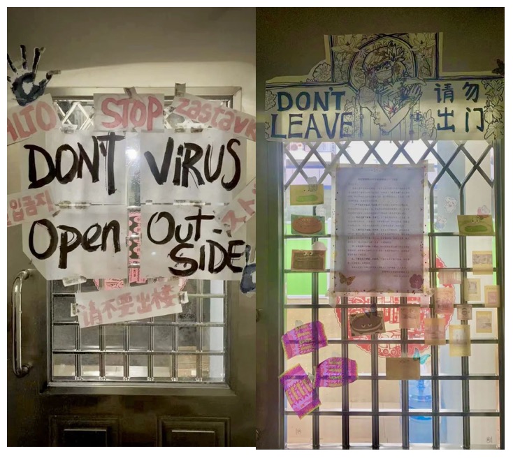 Clement Tanaka, a Indonesian PhD student from the Research Center for Chinese Ancient Literature, came up with the idea of decorating the door of the building he manages to urge everyone to stay inside. Other buildings quickly followed suit and created their own stay-in reminders.