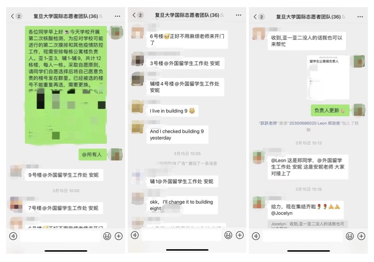 To take good care of these students, on March 15, a notice was released in the WeChat group of the International Student Volunteer Service Team to recruit ad hoc building managers to serve fellow students.