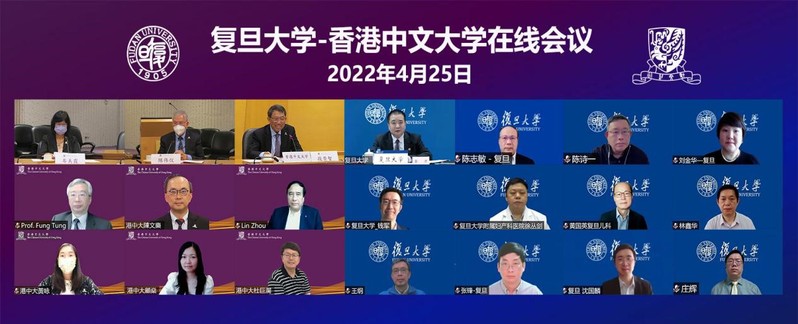 On April 25, Fudan University and the Chinese University of Hong Kong (CUHK) held the fifth Meeting of the Steering Committee for Cooperation between the two universities online.