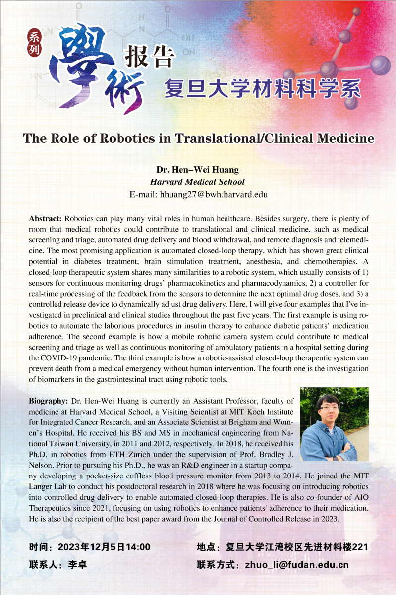 Venue:Room 221, Advanced Materials Building, Jiangwan Campus