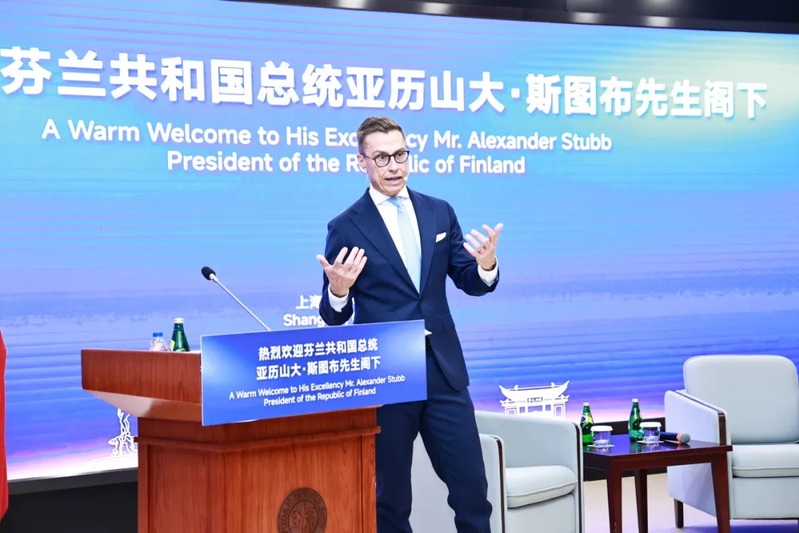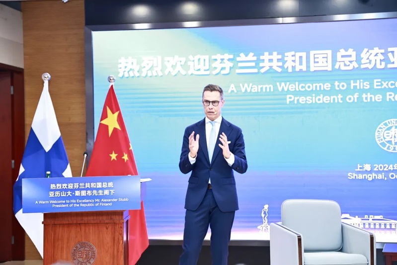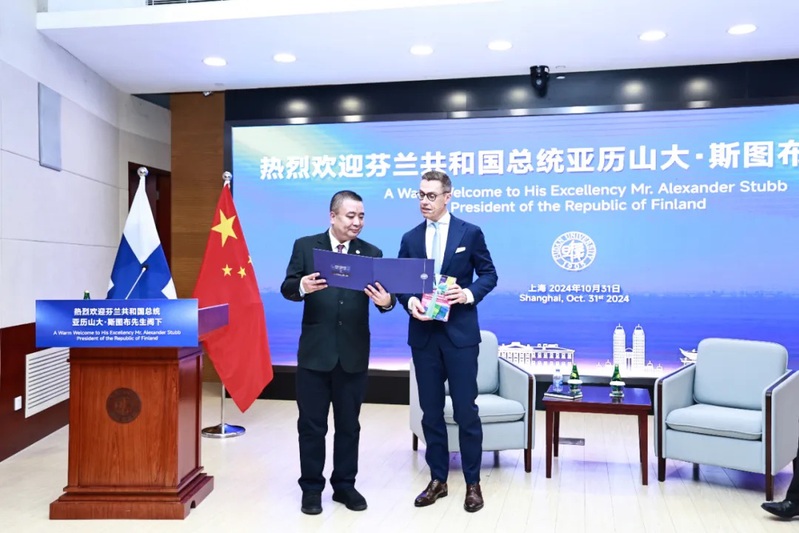 Finnish President Alexander Stubb wrapped up his four-day state visit to China with a stop in Shanghai. On October 31, he arrived at Fudan University where he delivered an address and participated in dialogues with the university's students and faculty members.