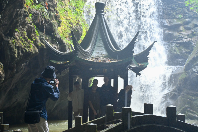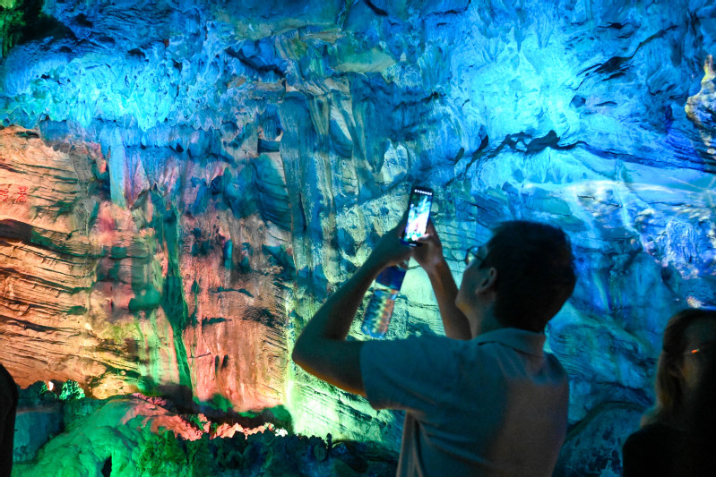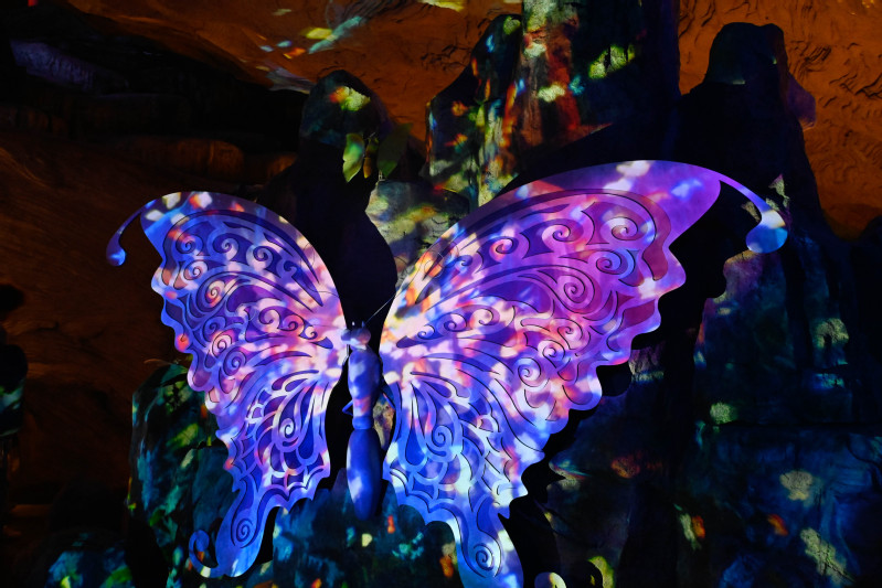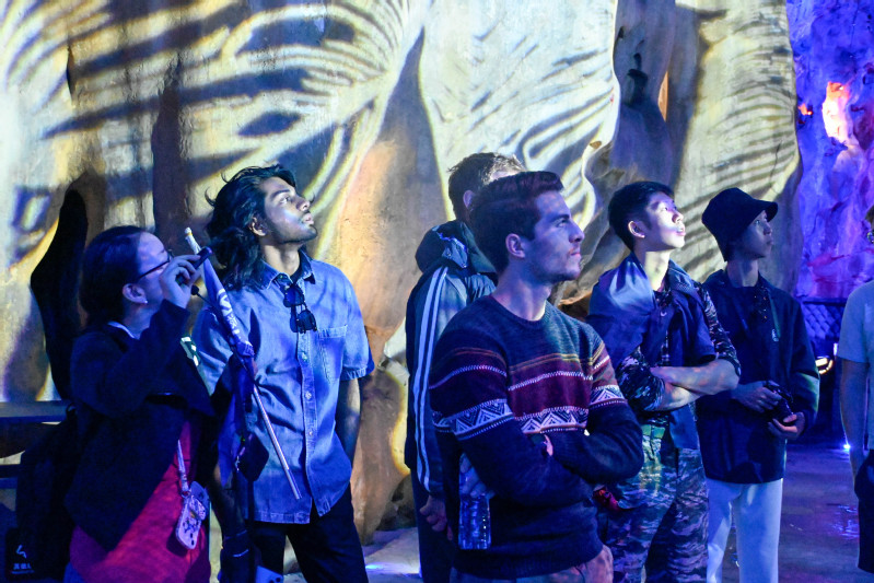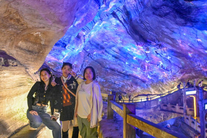 Enjoying an immersive multimedia experience in Shanjuan Cave