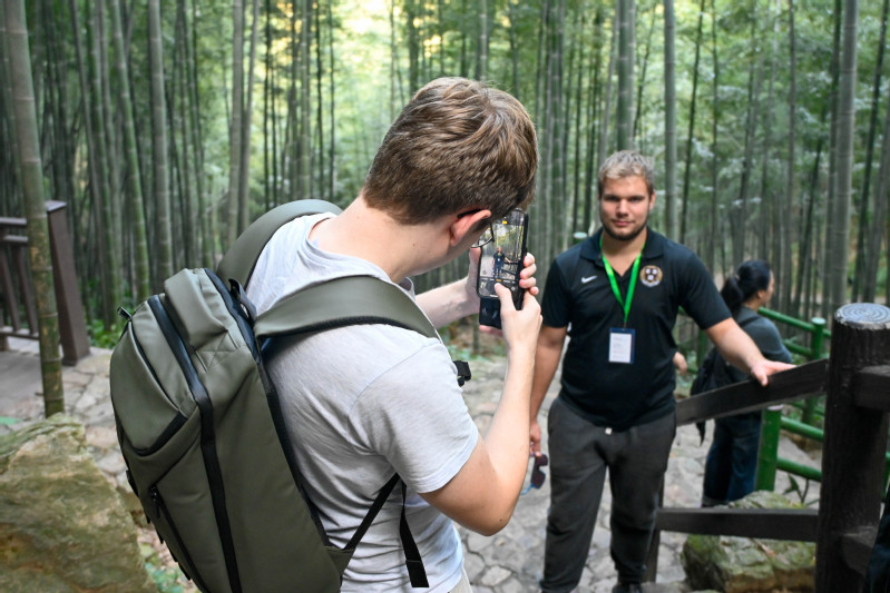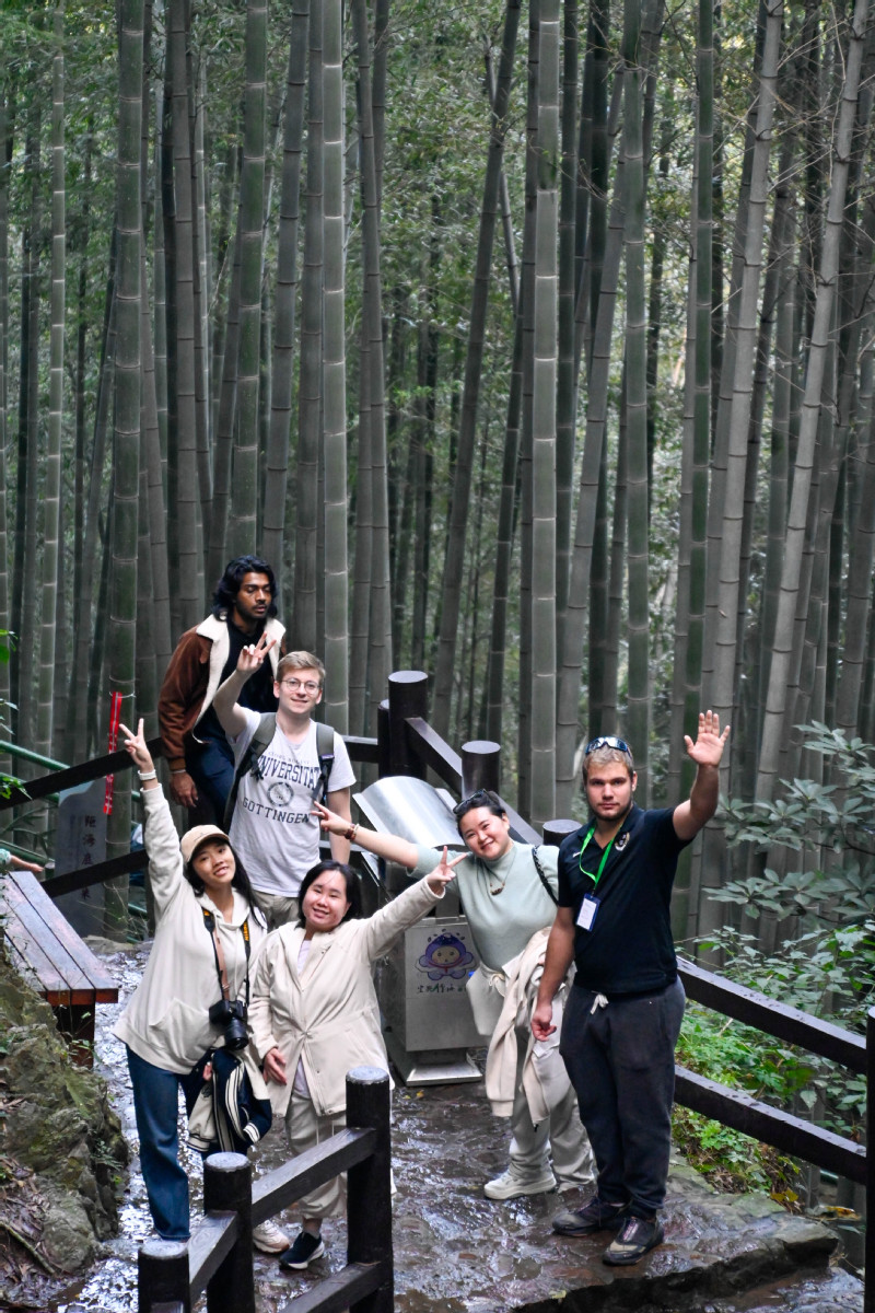 In addition to its love story and clay culture, Yixing is renowned for its lush bamboo forests. During the trip, students hiked in the Yixing Bamboo Forest, immersing themselves in nature. “It’s my first time seeing a bamboo forest. Even though I didn’t make it to the top, I still enjoyed it a lot,” said Truc Ngan, a Ph.D. student from Vietnam.