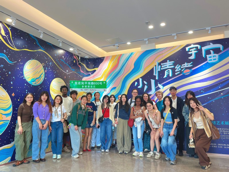 On the afternoon of April 30, a group of international exchange students and teachers from the Culture and Health course in the Department of Sociology at Fudan University's School of Social Development and Public Policy visited the No. 600 Gallery, located within the Shanghai Mental Health Center, to collectively experience the Tiny Emotion Universe—Adolescent Pan-Emotion Art Exhibition. This field trip aimed to expand students' understanding of adolescent mental health, social emotional expression, and medical humanities through an immersive art experience.