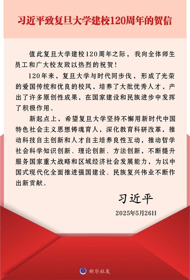 One day earlier, President XI Jinping extended congratulations to Fudan University on the 120th anniversary of its founding, encouraging the university to promote a virtuous cycle between independent tech innovation and homegrown talent development.