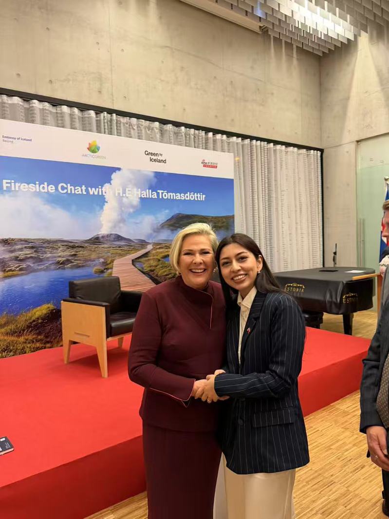 Since 2008, Fudan University has selected 21 students for exchange programs in Iceland and welcomed 12 Icelandic students to its campus. Among them is Francesca Rán Rositudóttir, a PhD candidate at Fudan’s School of International Relations and Public Affairs, who joined a face-to-face meeting with President Tómasdóttir at the Icelandic Embassy in Beijing on October 14.