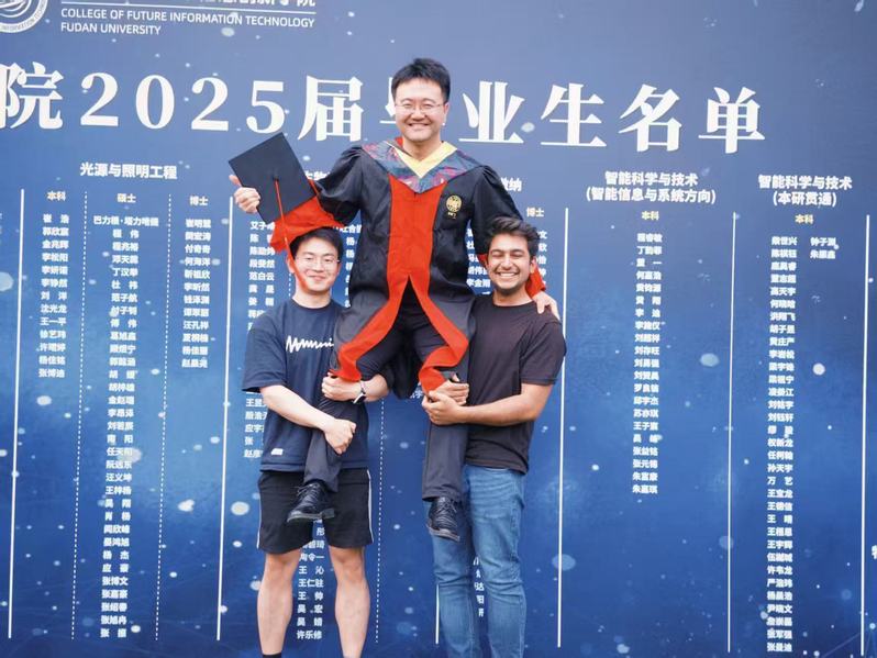 For now, his immediate goal is to continue his research and enjoy the simple, rewarding experiences—like walking Meraxes across Fudan's campus and watching as the future he's helping to build waves back at an appreciative audience.