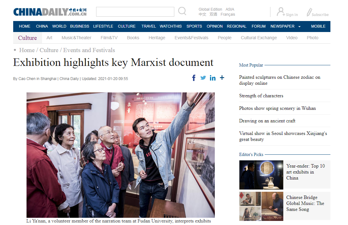 China Daily: Exhibition highlights key Marxist document